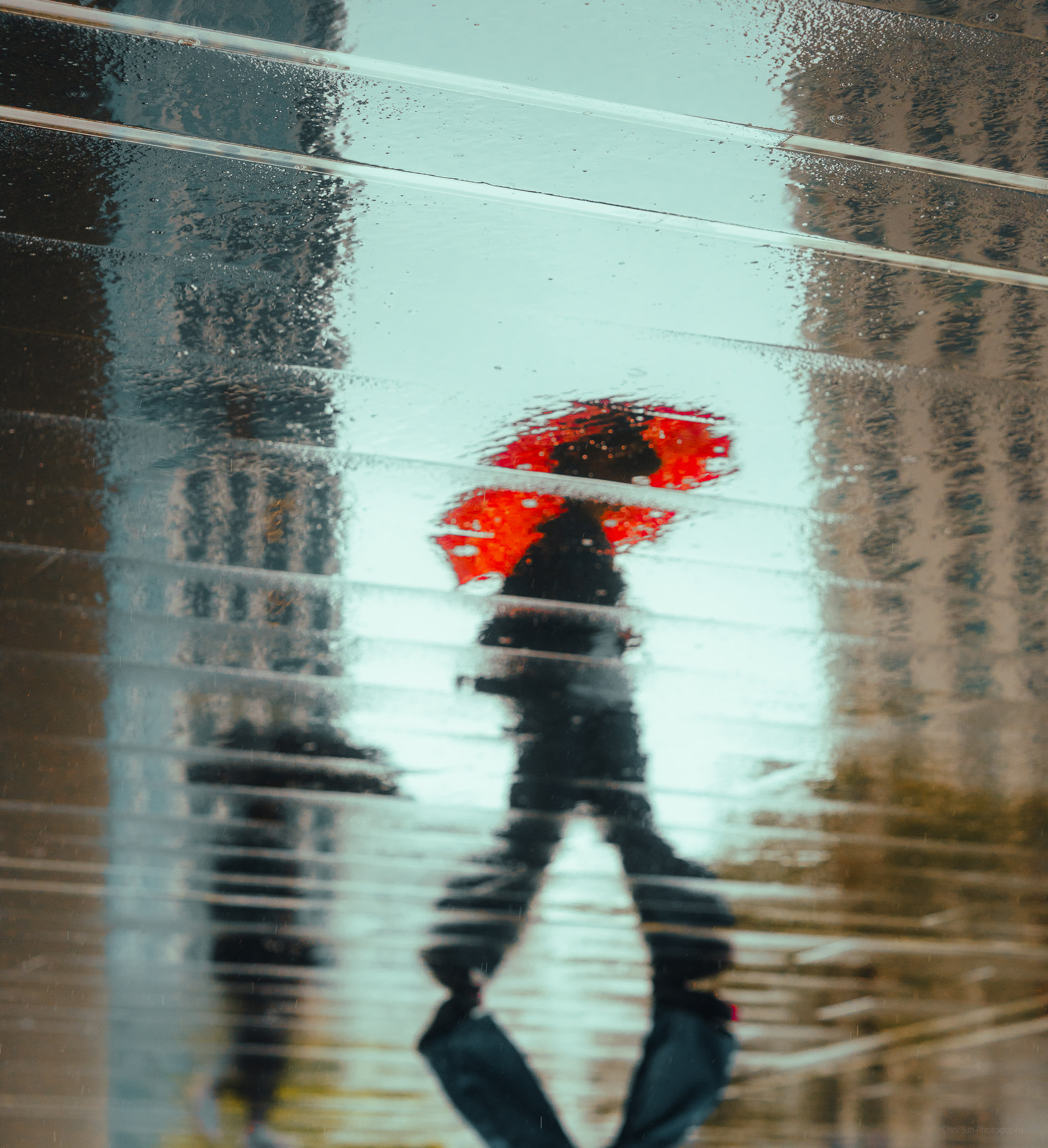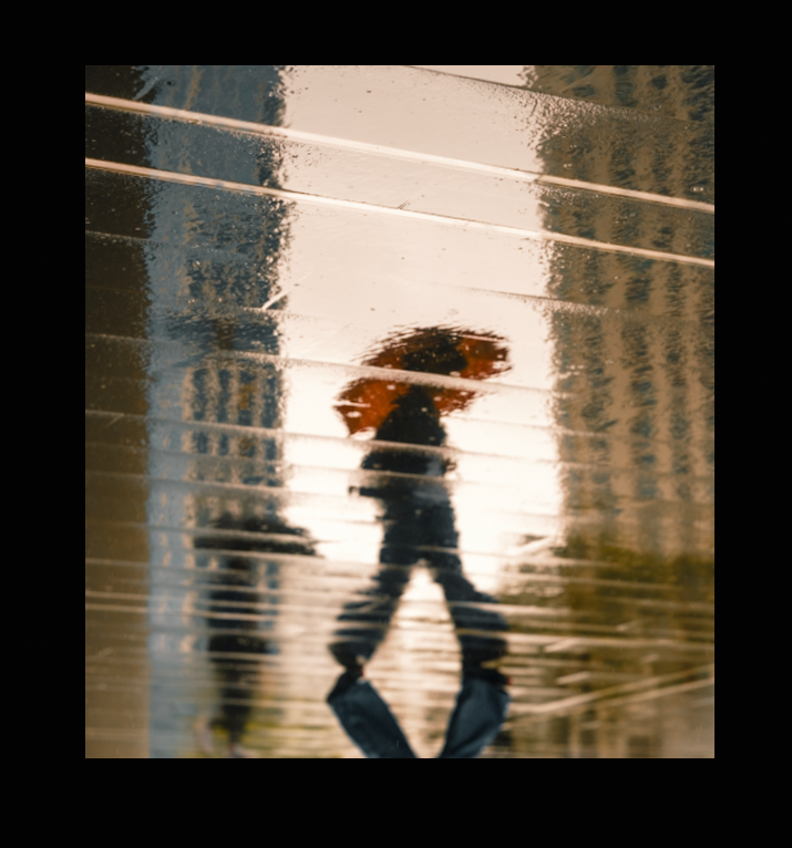 크롭은 부피사체의 하얀 신발이 거슬리기도 하고 있는 것이 원근감을 조금 더 주기 때문에 그 위로 하는 것이 적당하다고 판단했고 빨간 우산 바깥으로 비네팅을 마스킹으로 처리했다.