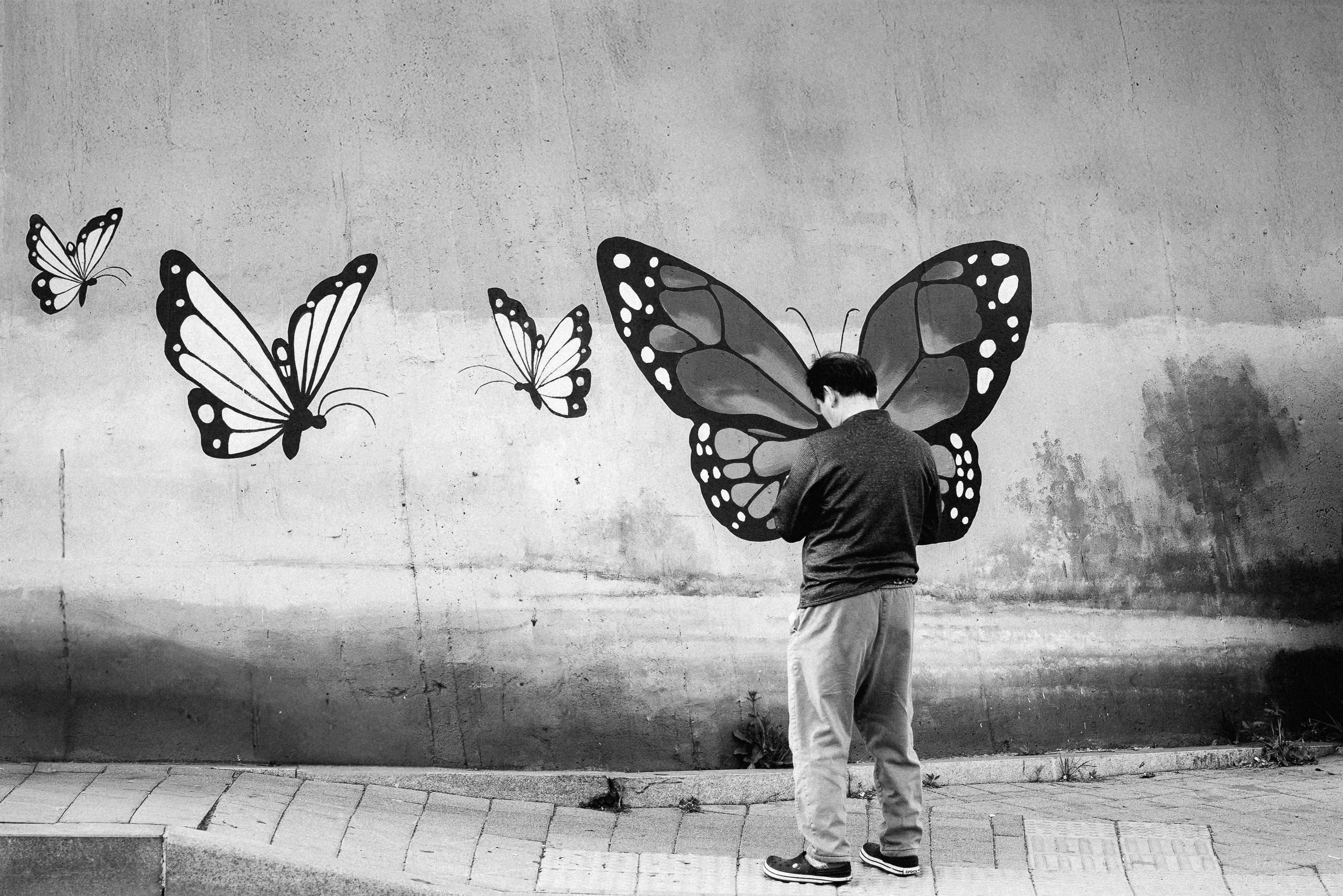 나비 벽화에 한 사람이 정확하게 일치되어 있어서 찍었던 사진이다.