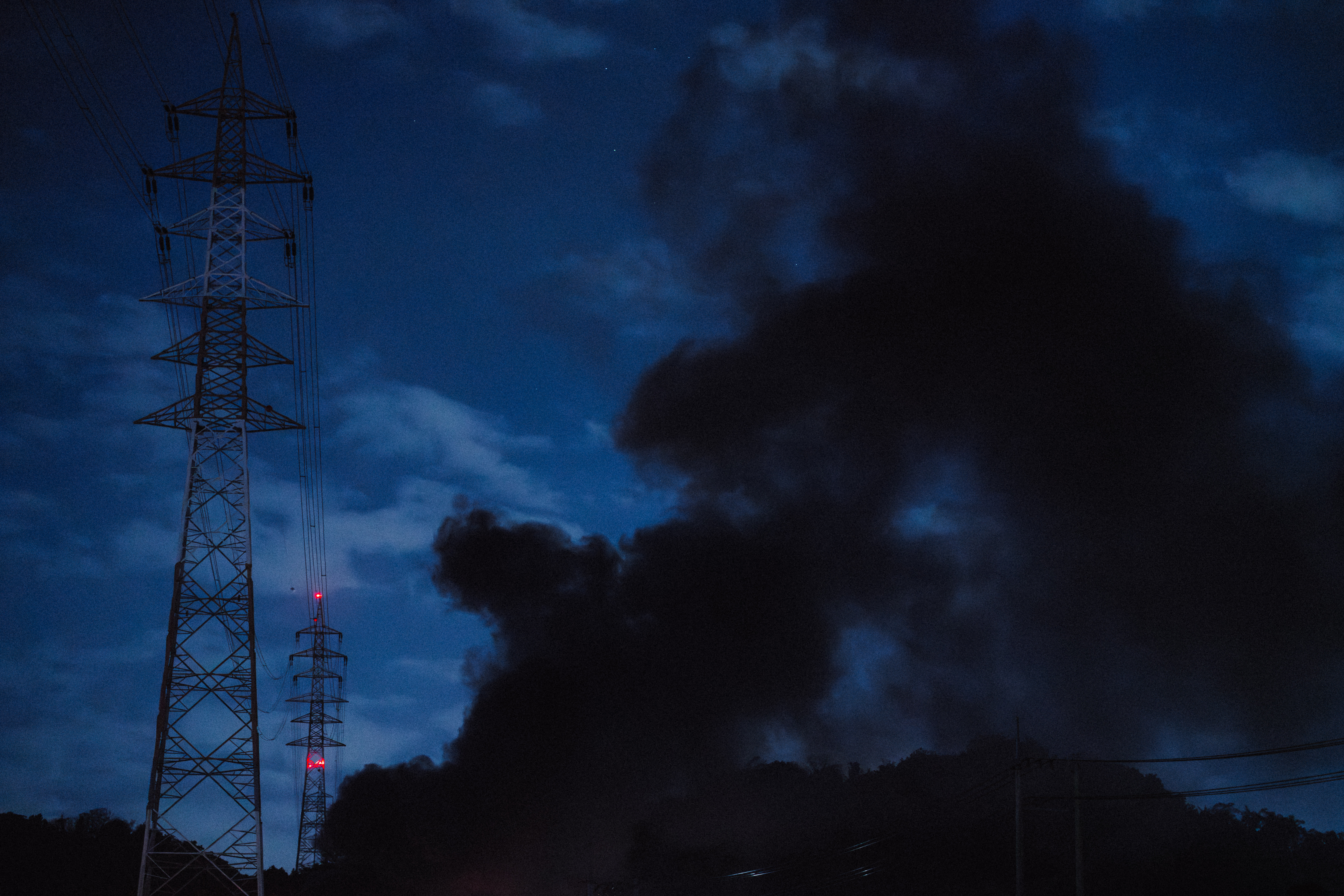 비명처럼 솟구치는 검은 연기 너머 송전탑의 붉은 등과 구름 너머 별들은 아무 일 없다는 듯 평화롭게 깜빡이고 있었다.