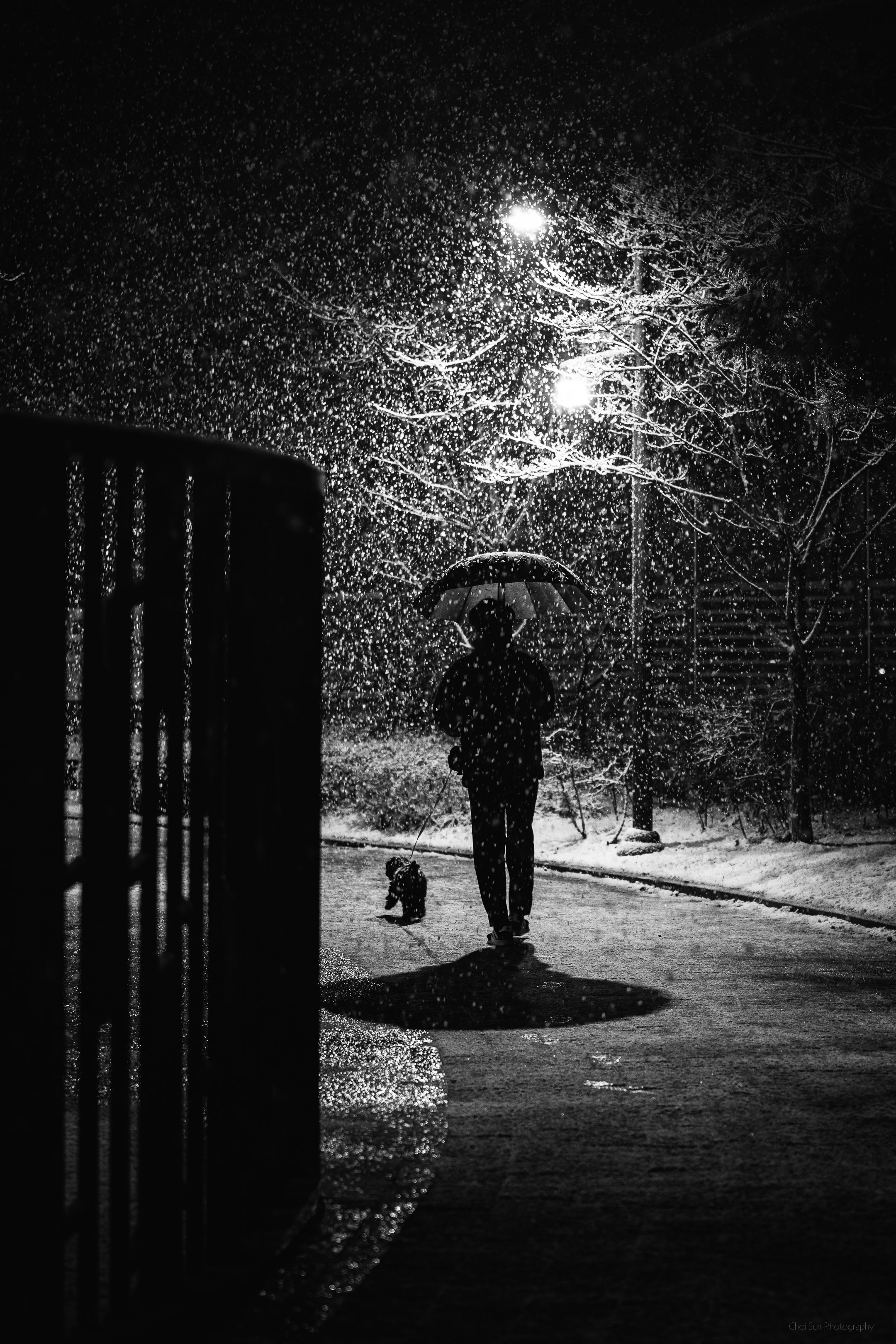 가장 감정적으로 찍은 사진이다. 가로등 불빛이 삼각형으로 퍼지며 그 빛속에서 눈이 반짝이는 장면으로, 사실 셔터를 누르기까지 정말 한참을 바라보았었다. 시그마 65mm F2, 1/250s, 논크롭